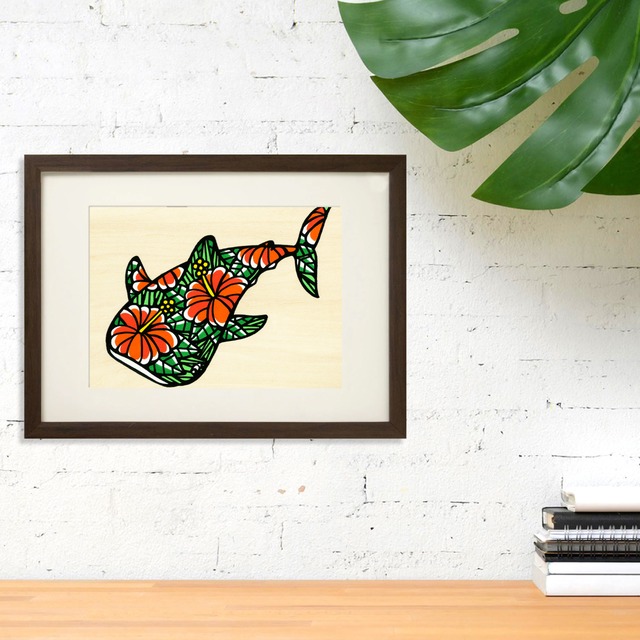 【原画】Wood Panel A4(Whale Shark Flower)with Frame