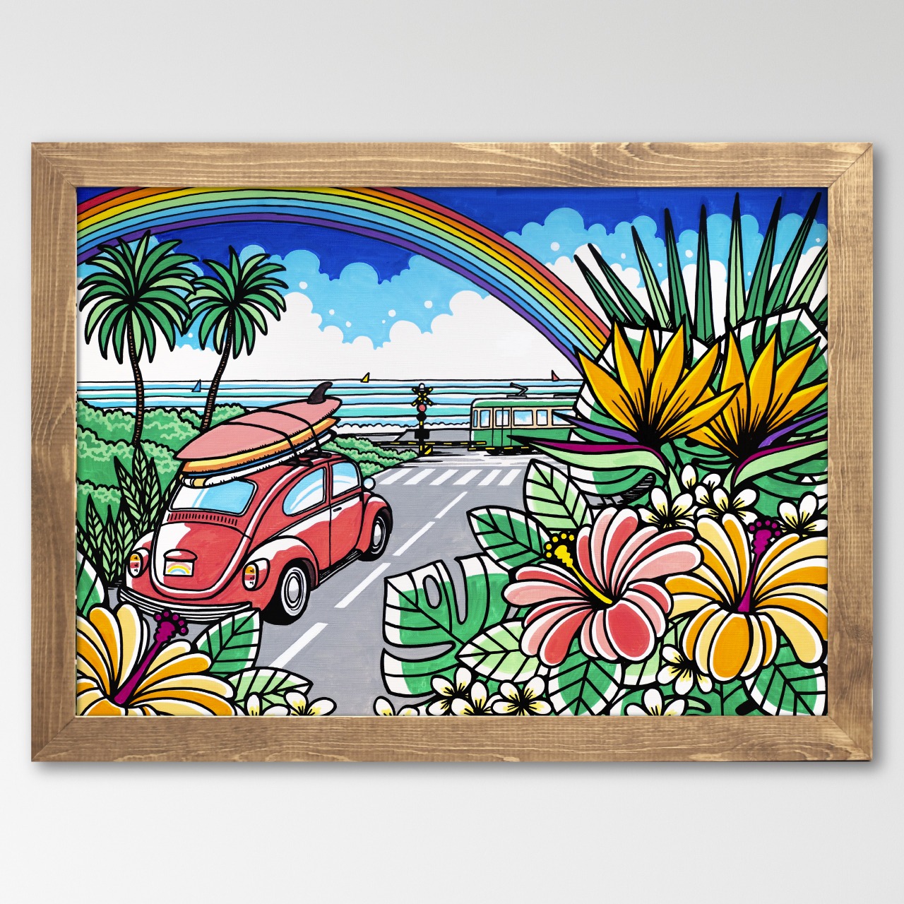 【原画】Wood Panel B2 Size(江ノ電とビートル)with Frame