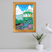 【原画】Wood Panel A3 Size(江ノ電と紫陽花)with Frame