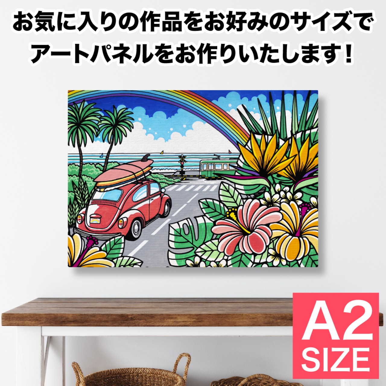 高画質なプリントで原画に近いクオリティーを実現し、麻100%布を釘打ちした高級キャンバスボード。側面までしっかりと印刷され、届いてすぐ飾ることができる手軽さと、キャンバスならではのアートな雰囲気で昨今人気のアイテムです。