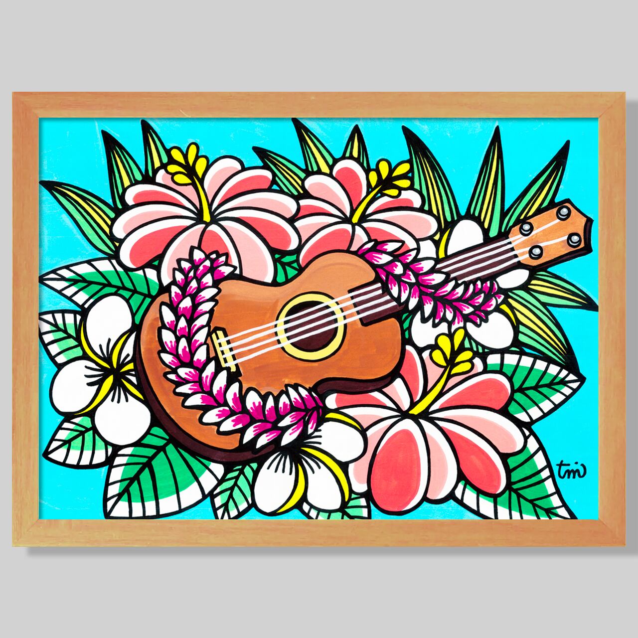 Wood Panel A3(Ukulele Hibiscus)