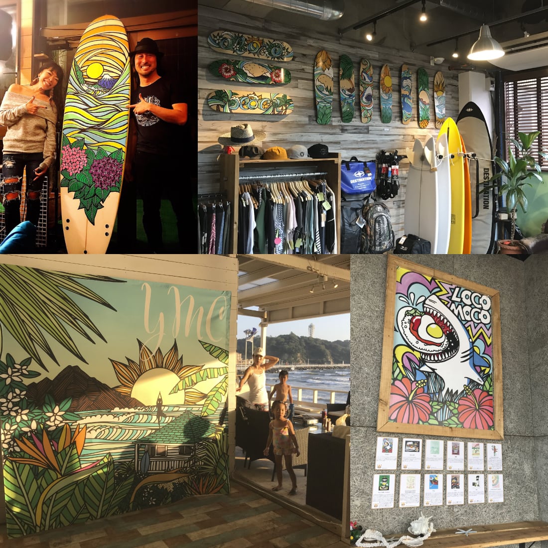 また同時期より、Aloha TableやAloha Street横浜店、湘南エリアのカフェ、サーフショップで展示やライブペイントを行ない作品発表の場を広げていく。