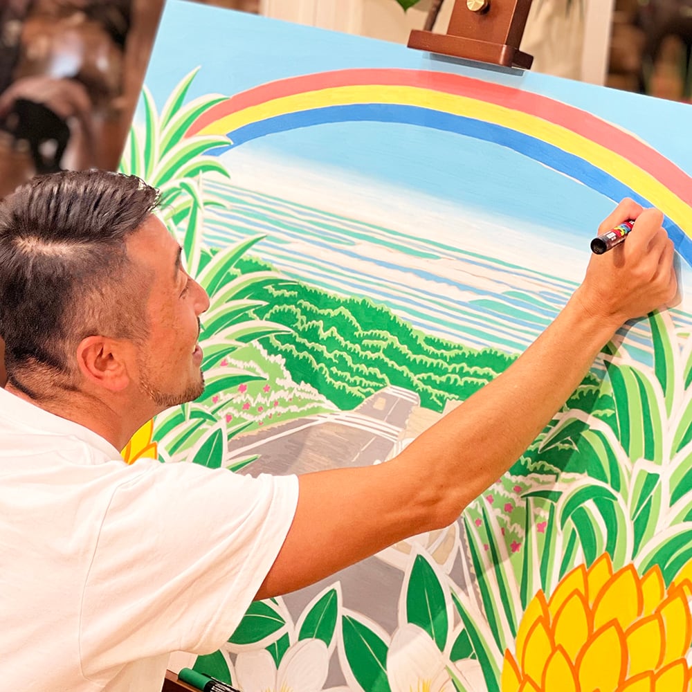 2023年、ワイキキのアウトリガー・ビーチコマー・ホテルロビーに作品を展示。同ホテル主催のアートイベント「テラス・オブ・モダン・アート(TOMA)」にも参加し、サーフボードのライブペイントを行うなど注目を集めた。